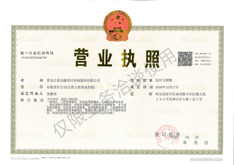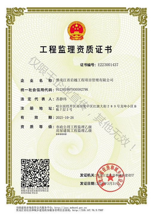 黑龍江省啟越項目咨詢集團有限公司,成立于2006年10月17日,具有中華人民共和國住房和城鄉(xiāng)建設(shè)部頒發(fā)的工程招標(biāo)代理機構(gòu)甲級資質(zhì)、工程造價咨詢企業(yè)甲級資質(zhì);黑龍江省住房和城鄉(xiāng)建設(shè)廳頒發(fā)的房屋建筑工程監(jiān)理資質(zhì)及市政公用工程監(jiān)理資質(zhì);黑龍江省司法廳頒布的司法鑒定許可證;中國政府采購網(wǎng)登記注冊的政府采購代理機構(gòu)。我公司是專業(yè)從事工程類招標(biāo)代理服務(wù)、政府采購項目類招標(biāo)代理服務(wù)、工程造價咨詢服務(wù)、工程造價司法鑒定服務(wù)、工程監(jiān)理服務(wù)及建設(shè)項目全過程跟蹤管理的工程技術(shù)服務(wù)咨詢企業(yè)。